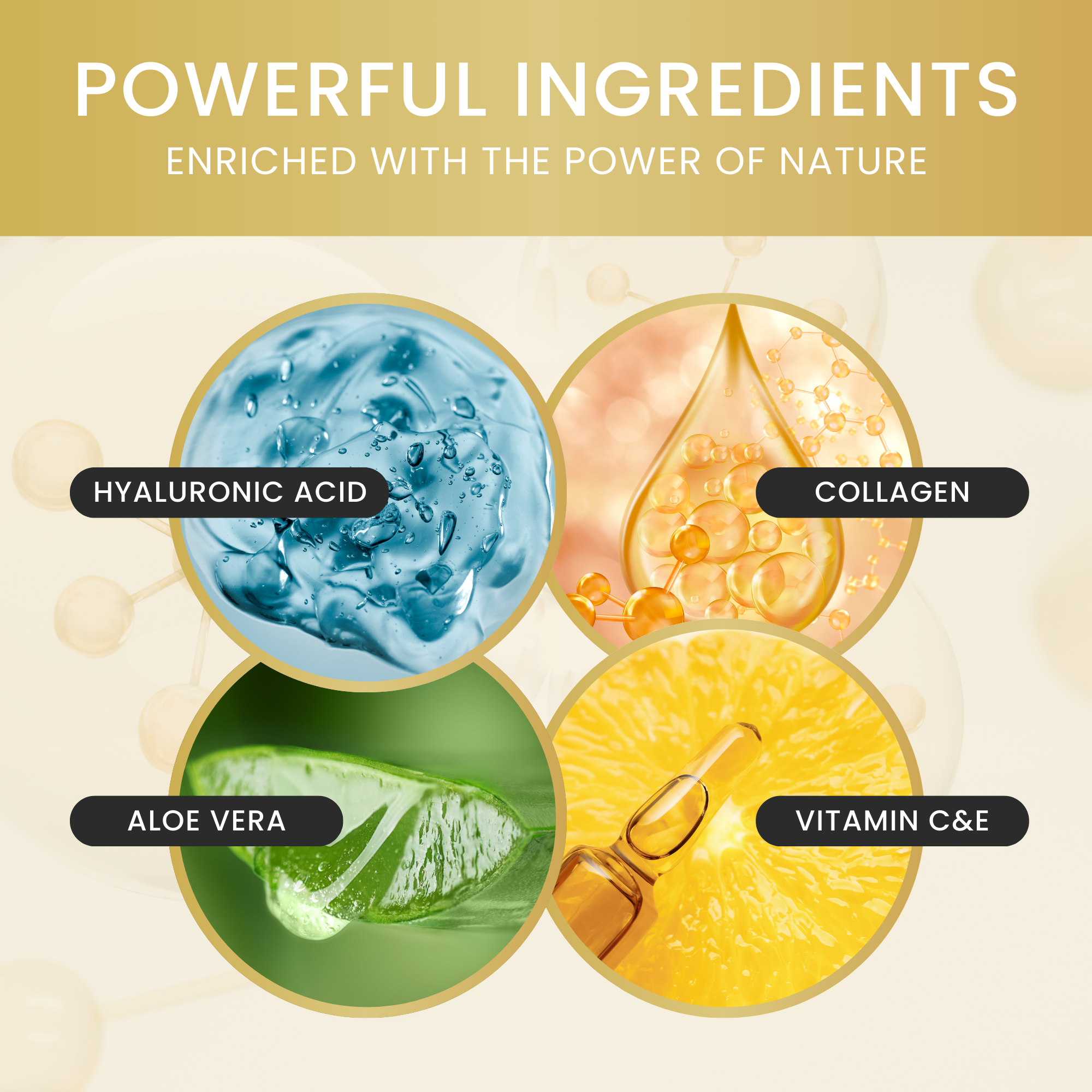 Infused with pure 24-karat gold which offers a multitude of benefits for your delicate under-eye area. Gold is known for its anti-inflammatory properties, reducing puffiness and dark circles while promoting circulation for a brighter, more youthful appearance.